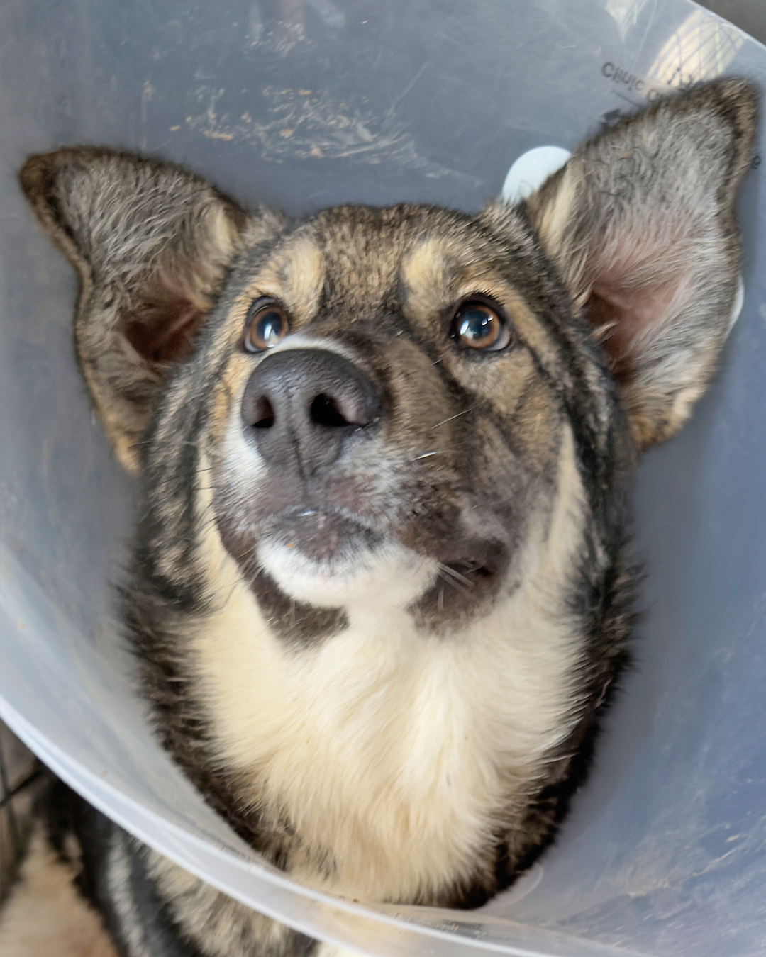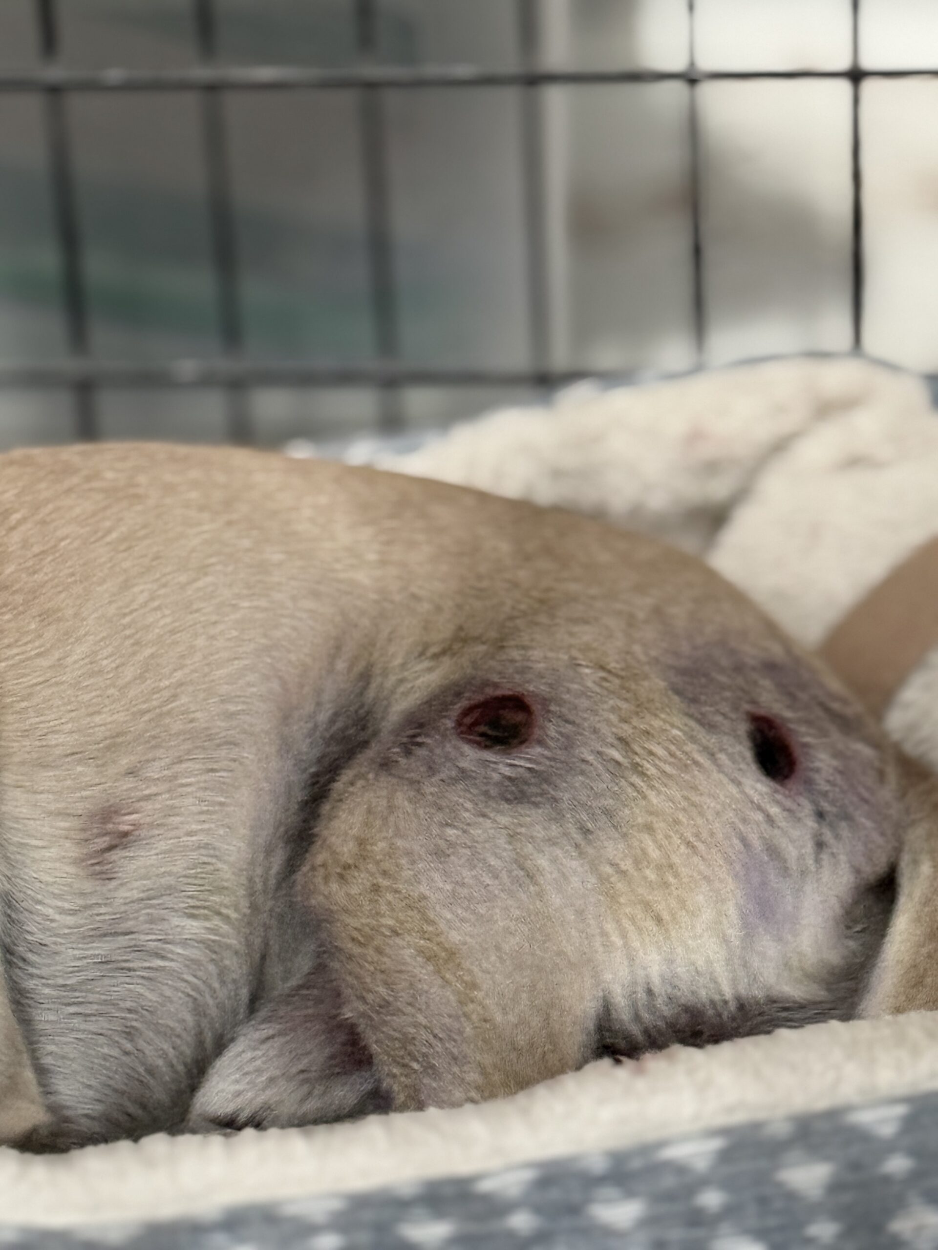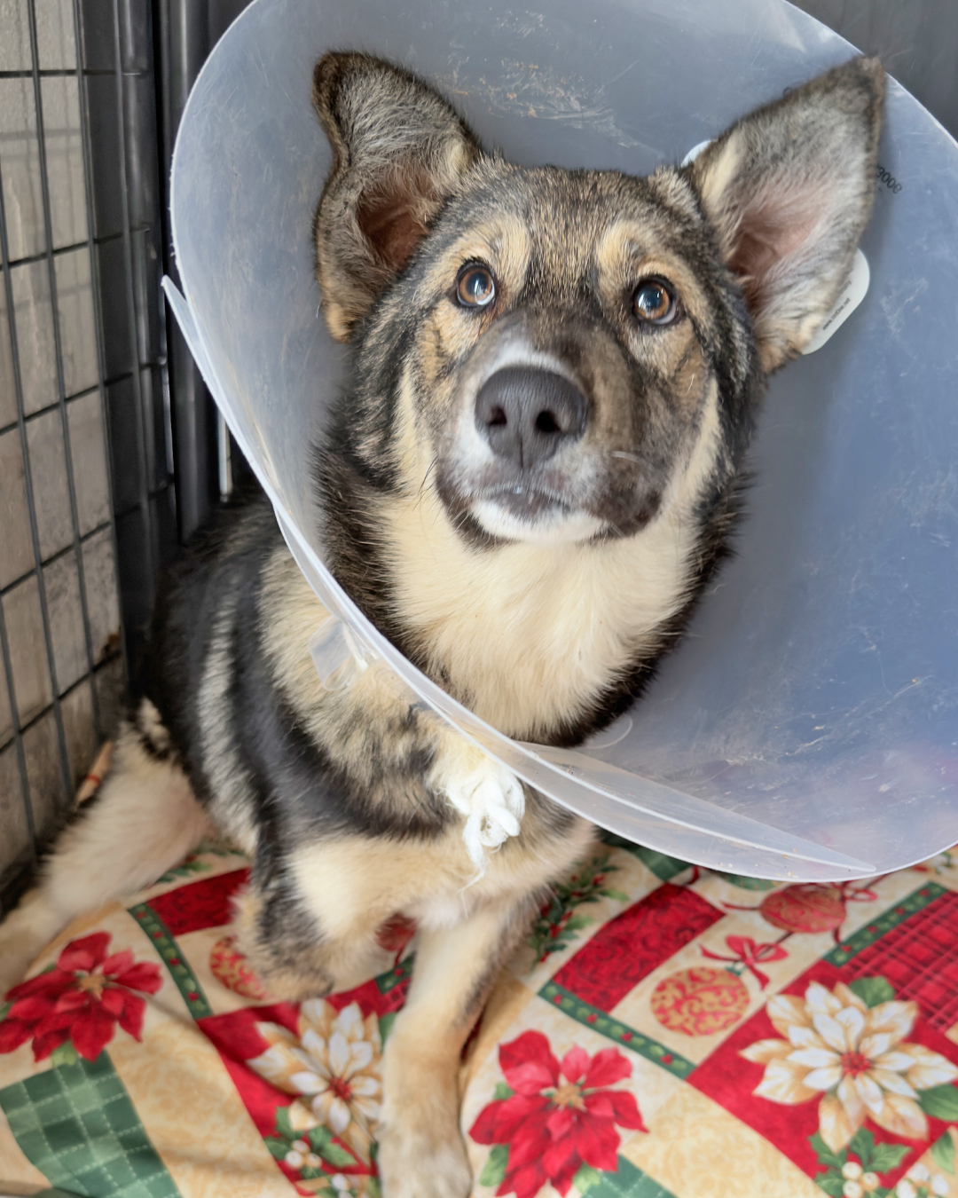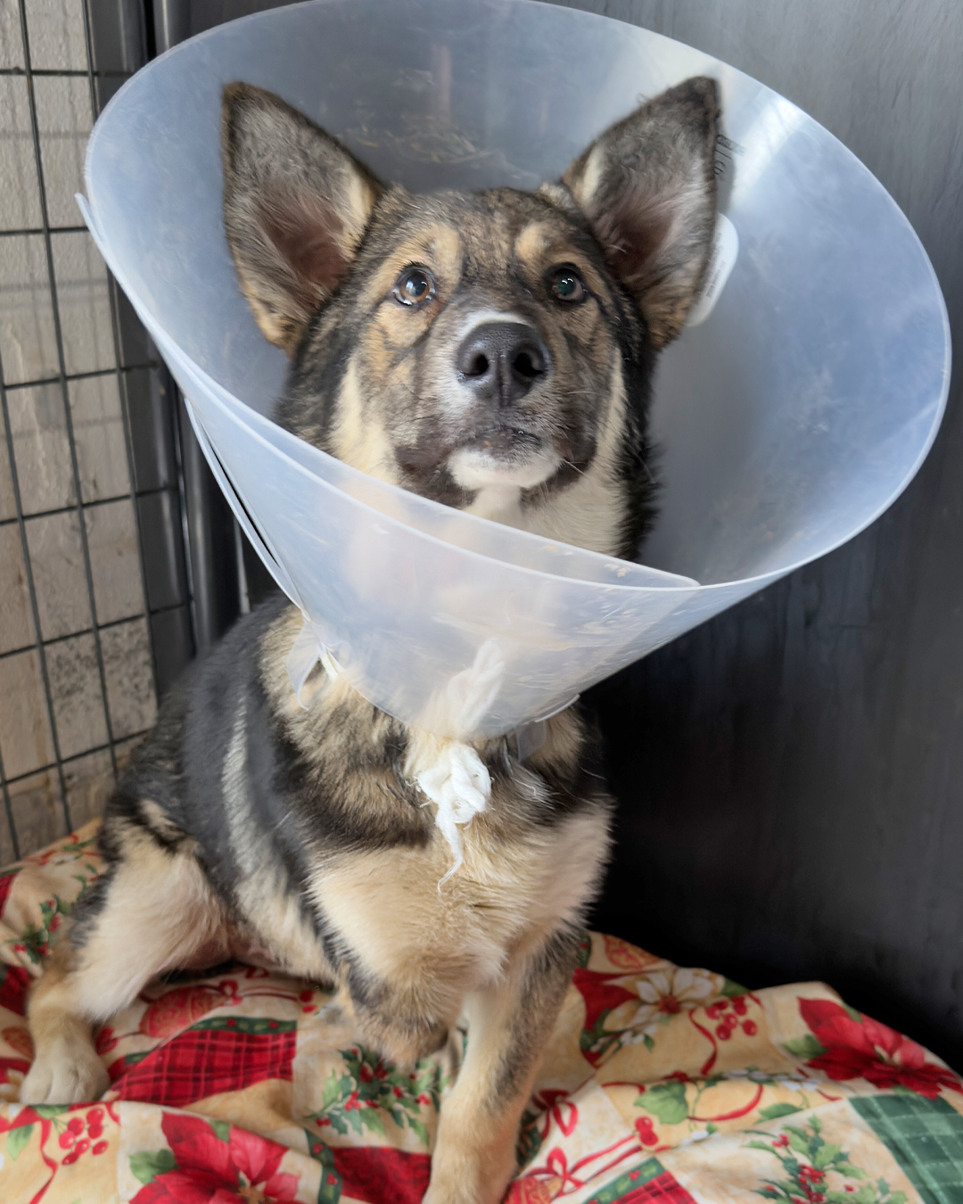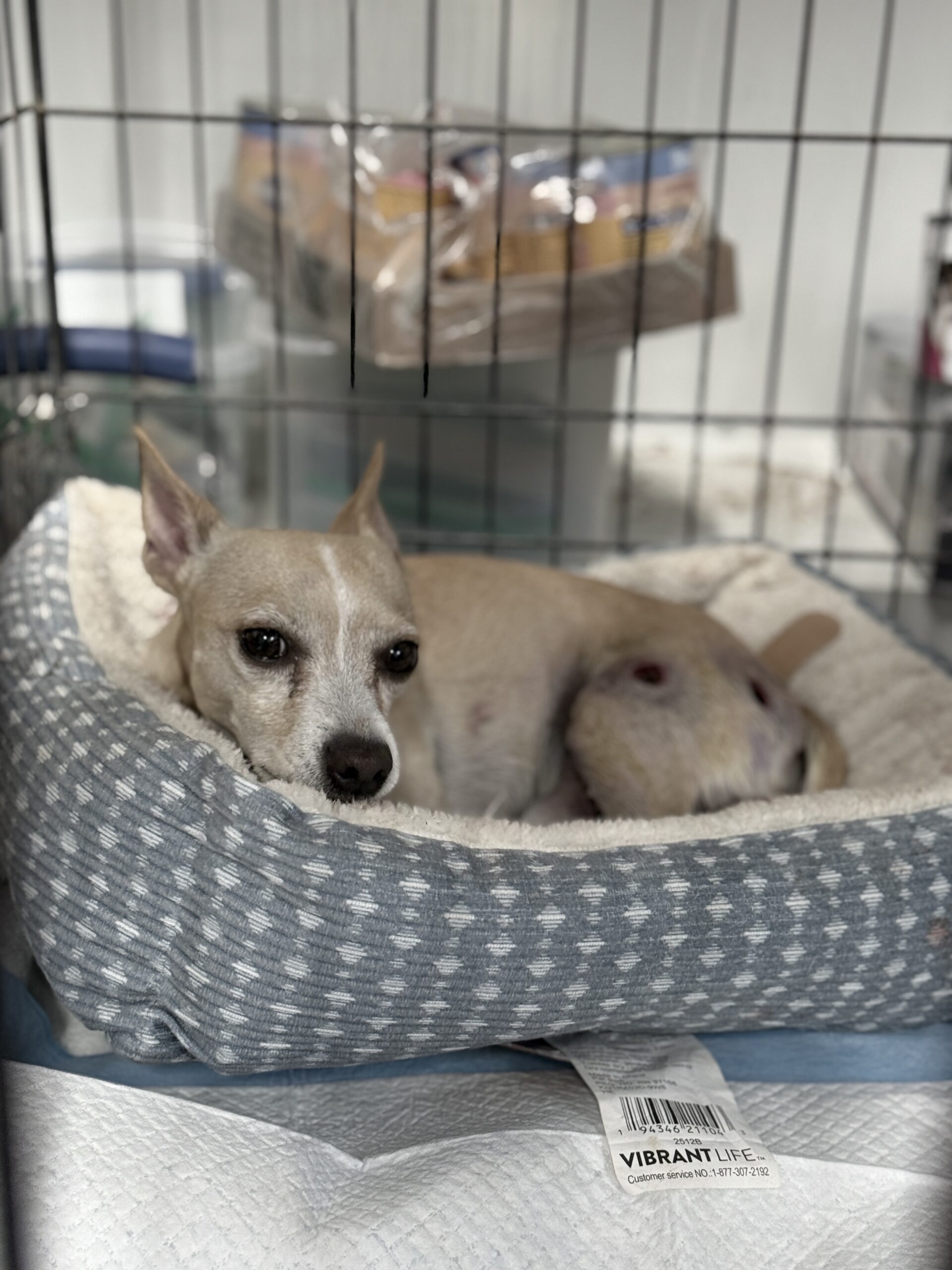 Today, she’s fighting to heal. Our veterinary team cleaned and treated her wounds, started antibiotics, and placed her on strict cage rest to give her body the chance to recover. Now, she’s eating on her own and making steady progress every day.