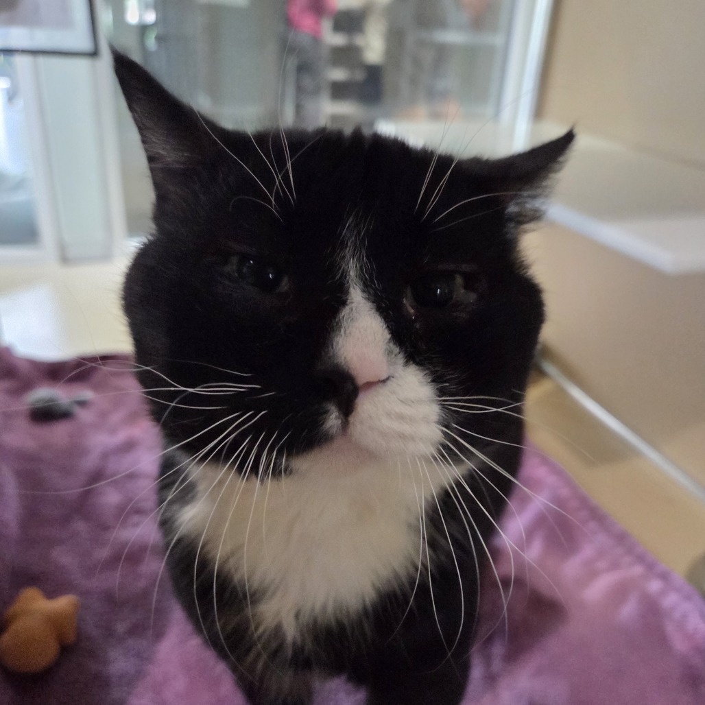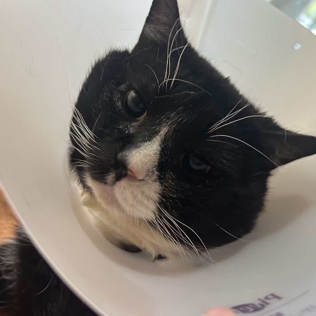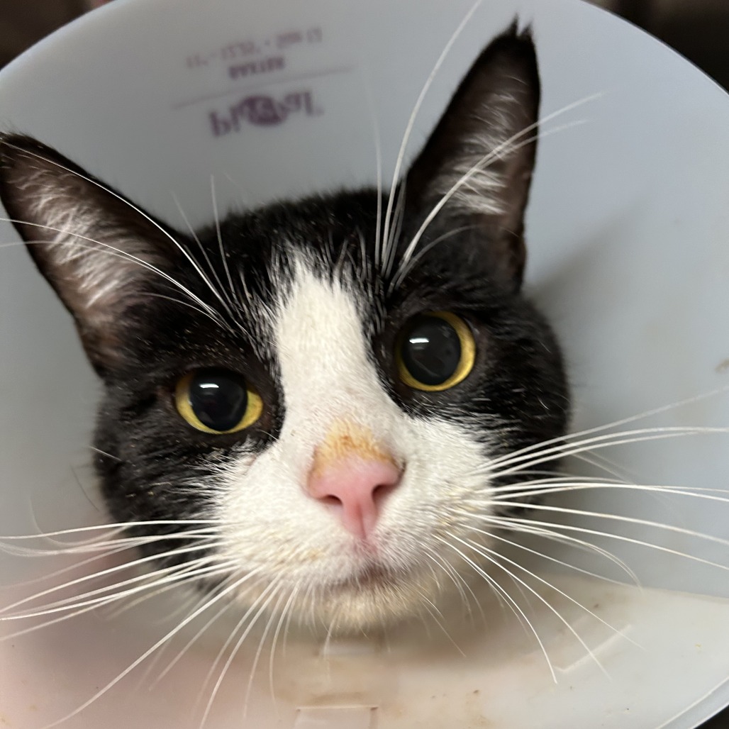 Mischief is a 15-year-old senior who came to us from a partner shelter needing specialized medical care. She underwent a double enucleation with our partners at Firehouse Animal Health Center to relieve chronic eye issues.