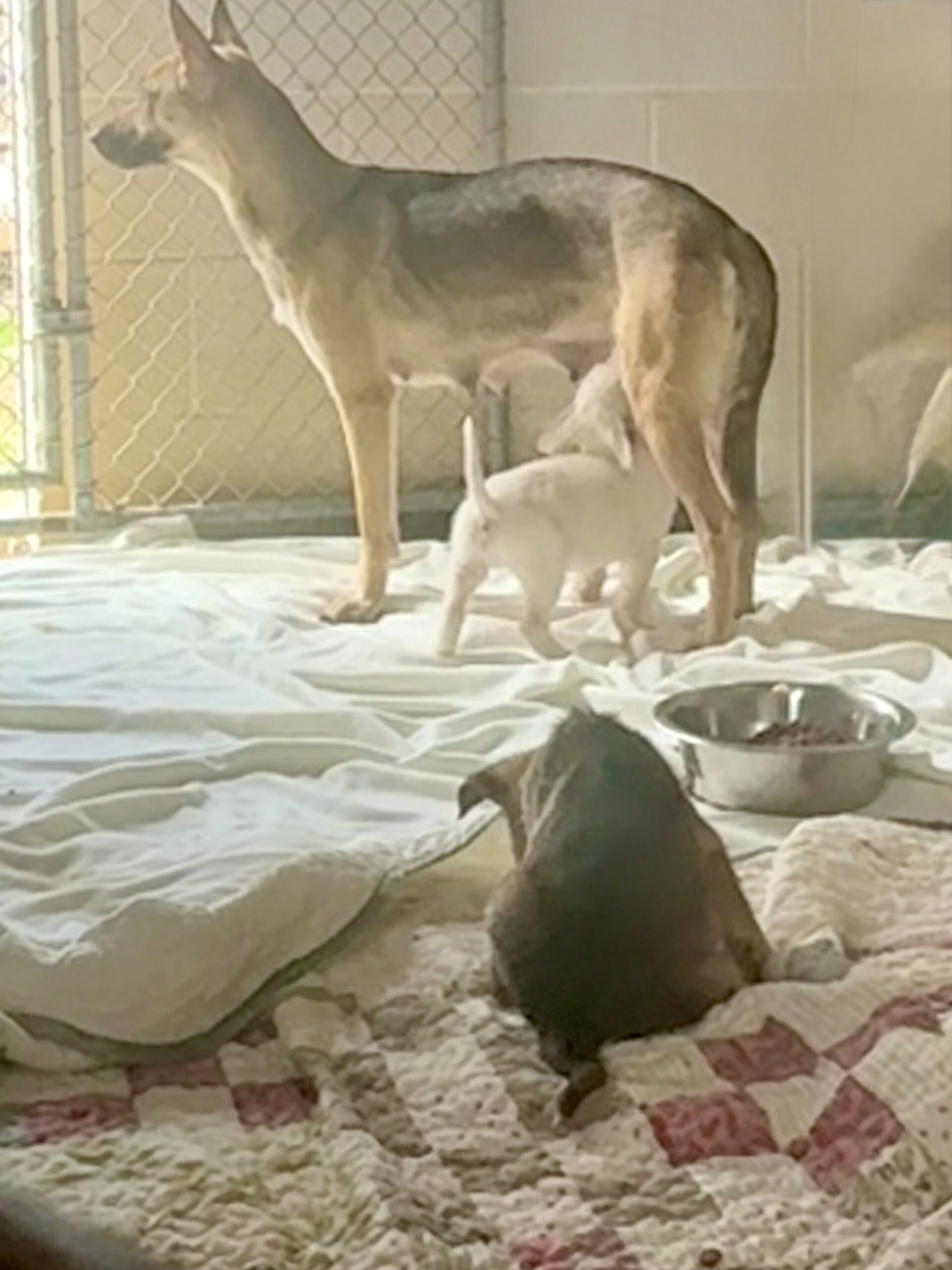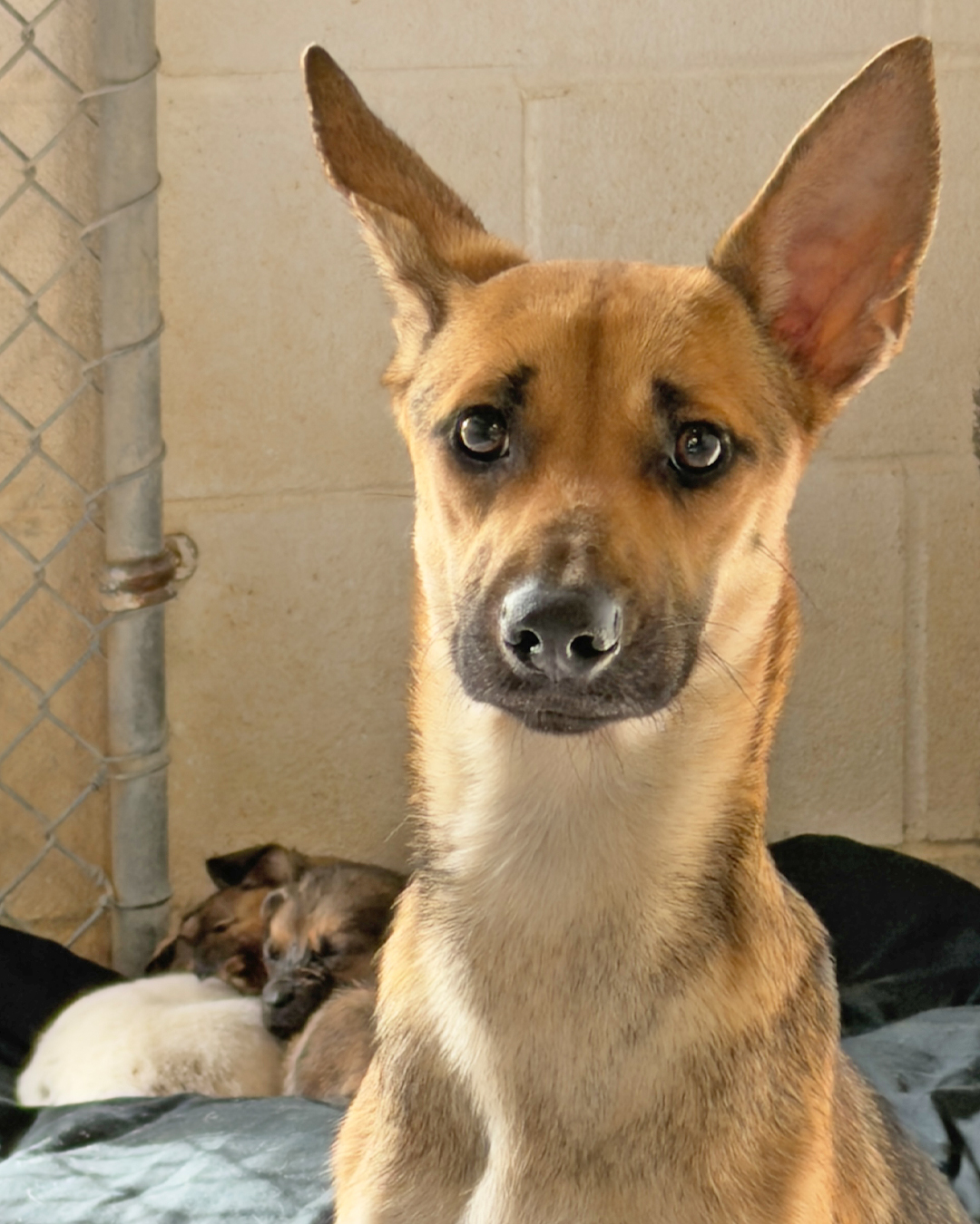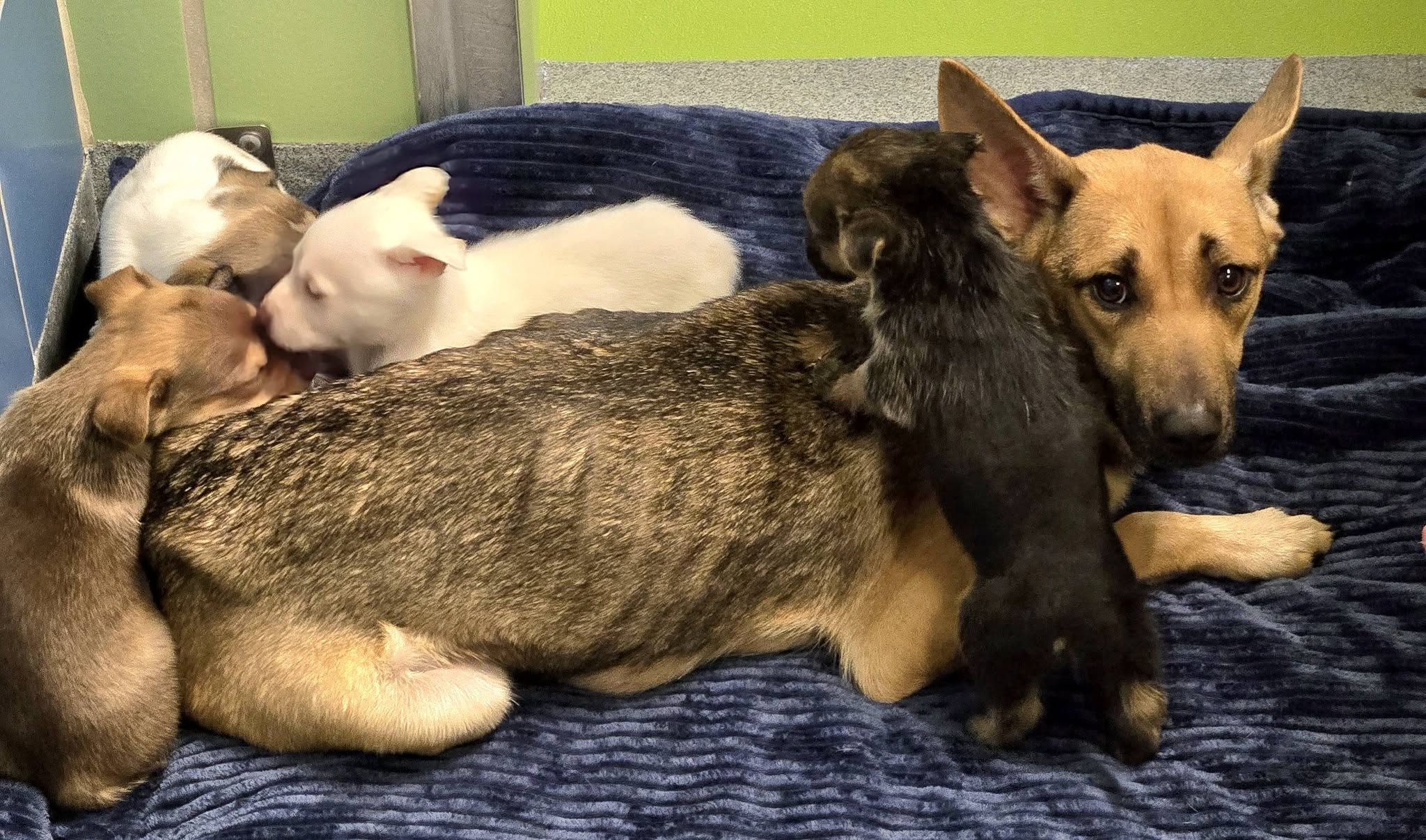 Feta arrived at our shelter in critical condition, severely emaciated with her ribs visibly protruding. Despite her own weakness, she never stopped caring for her puppies.