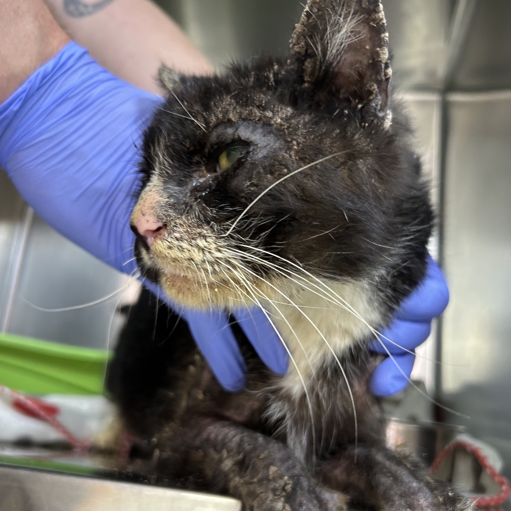 Vintage came to us from a partner shelter suffering from severe dermatitis. His case was challenging, but our medical team worked diligently over several weeks to get him the care he needed.