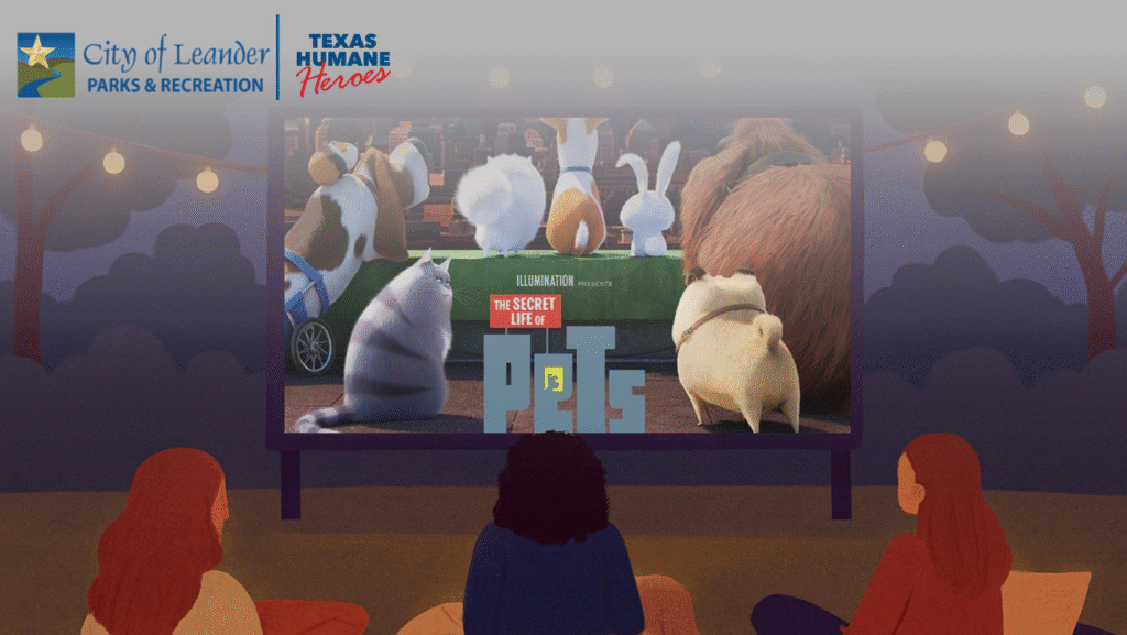 Texas Humane Heroes and the City of Leander Parks and Recreation are partnering to bring the community together for an exciting outdoor movie night featuring The Secret Life of Pets, perfect for the whole family. Be sure to mark your calendar — we hope to see you there!
